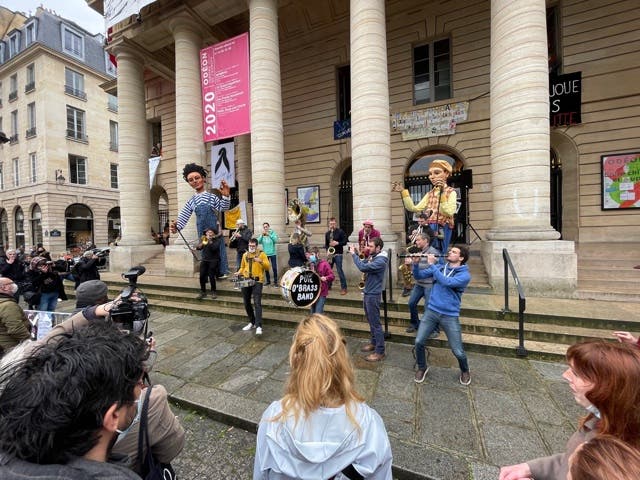 ولم يمارس الفنانون حرفتهم منذ أكثر من عام، ولتوعية المواطن الفرنسي حول ظروفهم الاقتصادية والمهنية السيئة يقوم هؤلاء الفنانون بتقديم حفلات مجانية أمام مسرح أوديون بالرغم من منع تلك العروض من قبل السلطات الفرنسية لأكثر من مرة منذ احتلال المسرح قبل شهر ونصف الشهر.