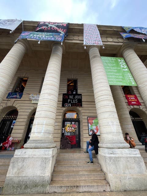 القبة نيوز- احتل ناشطون مسرح الاوديون الباريسي في حي سان جيرمان منذ الرابع من مارس احتجاجا على إغلاق المرافق الثقافية في فرنسا بسبب جائحة كورونا وقانون إصلاح نظام البطالة الذي تؤجل الحكومة التصويت بشأنه.