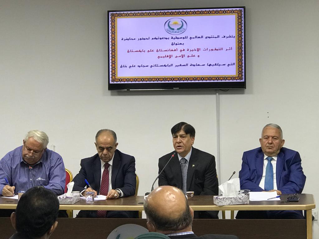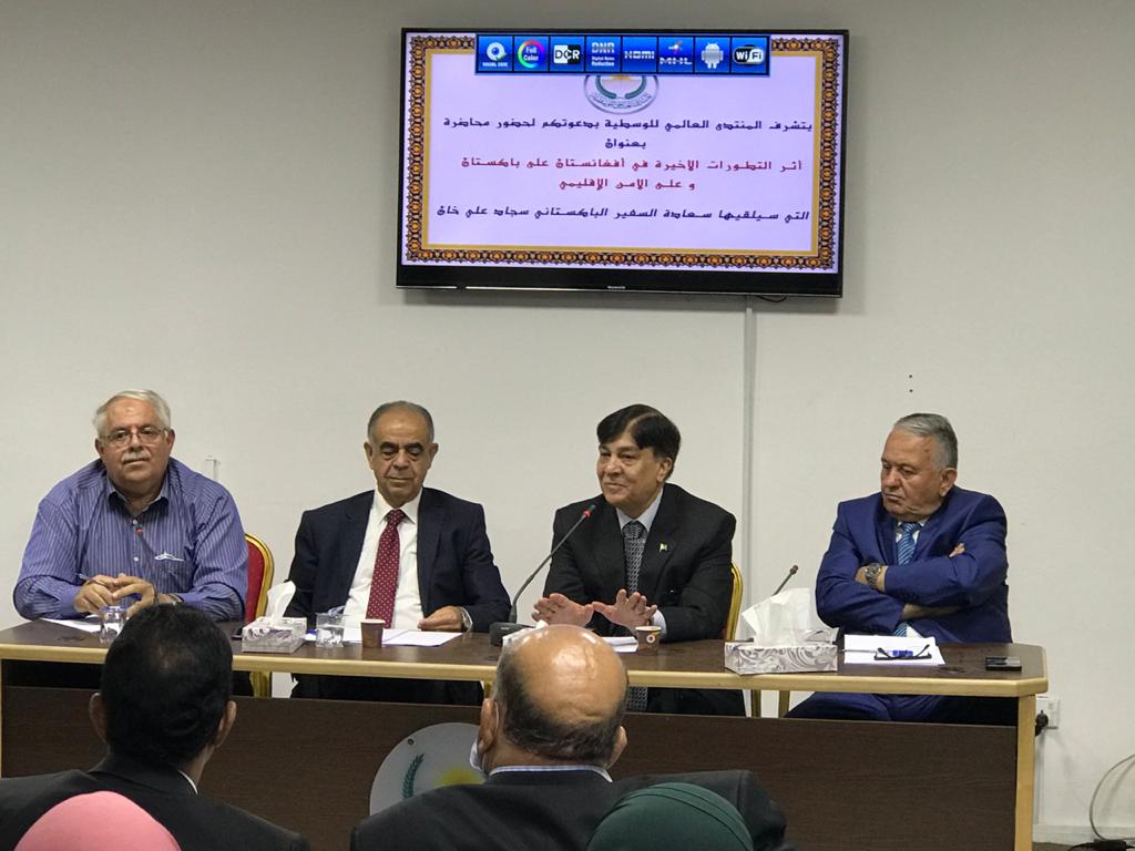 السفير الباكستاني يحاضر في منتدى الوسطية حول افغانستان