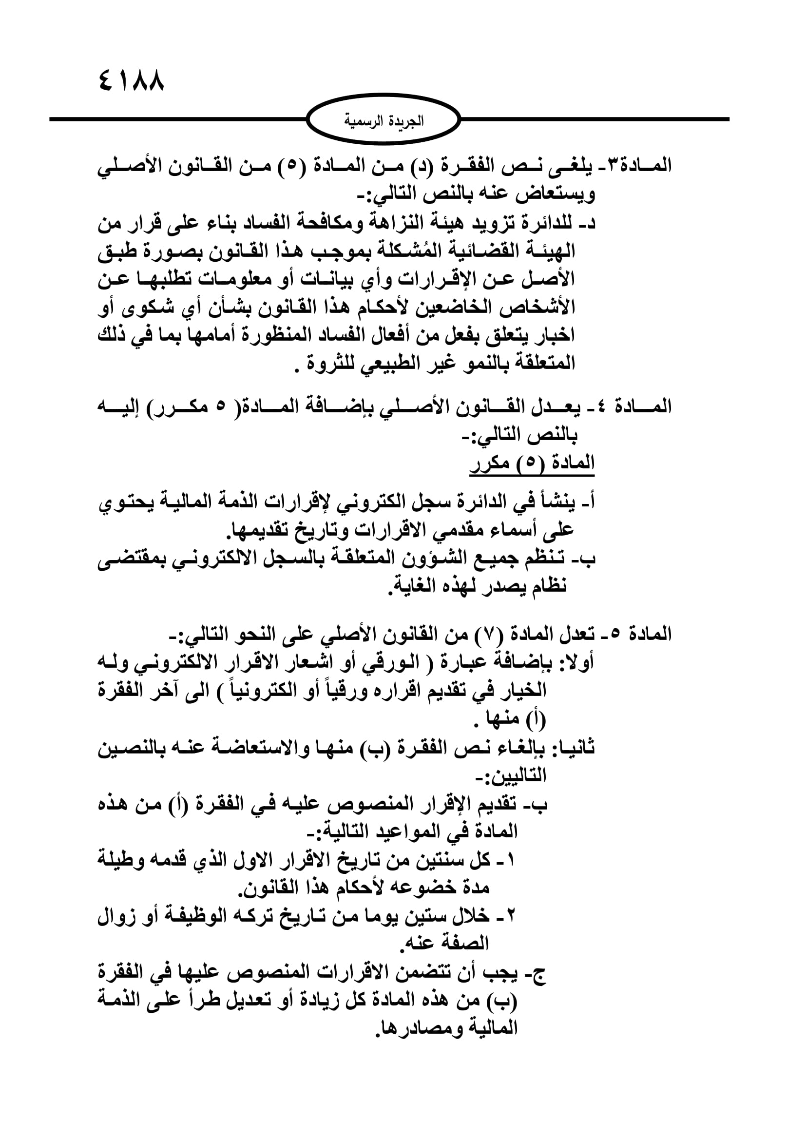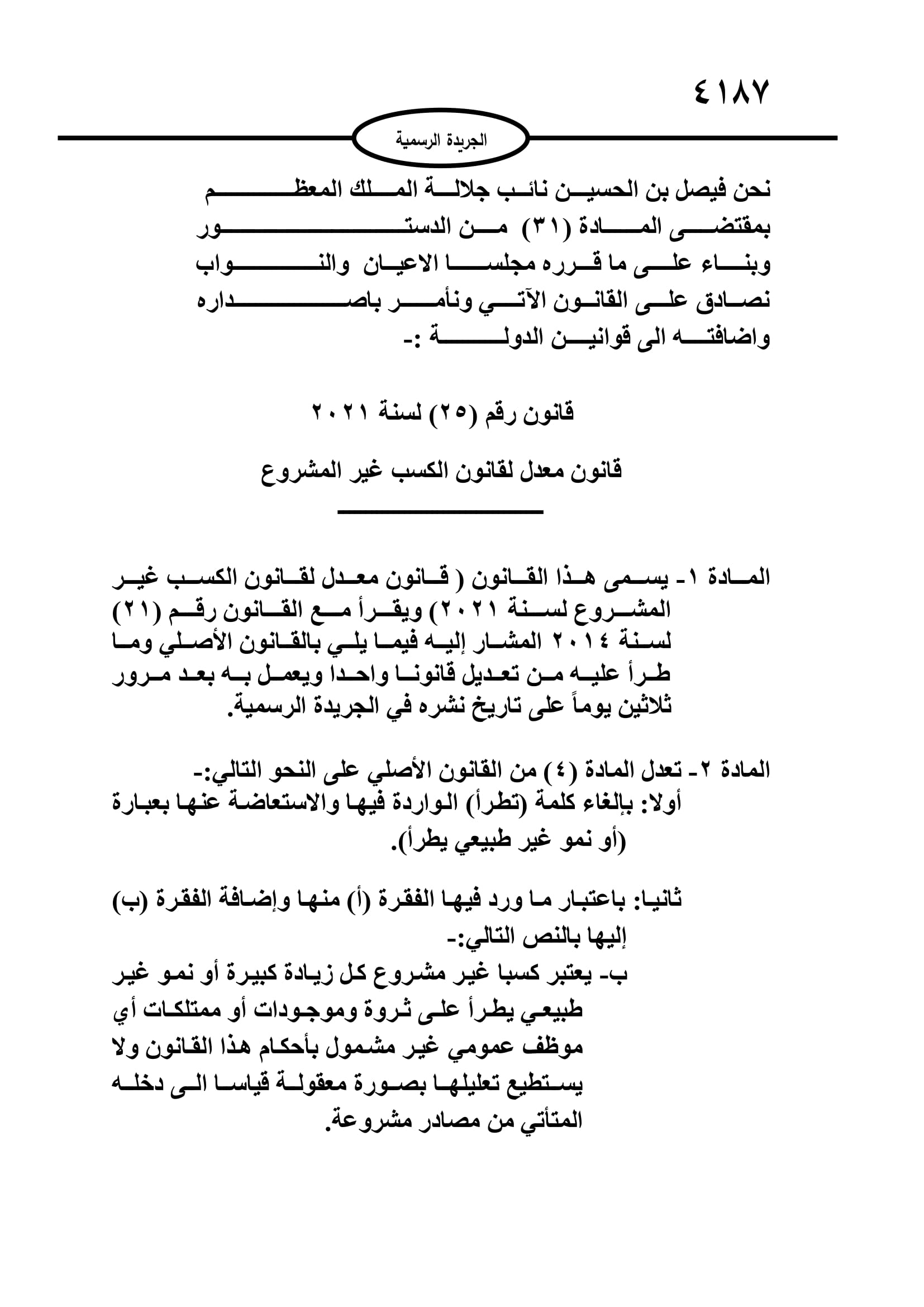 القبة نيوز- صدر في عدد الجريدة الرسمية اليوم الخميس الارادة الملكية السامية بصدور القانون المعدل لقانون الكسب غير المشروع.