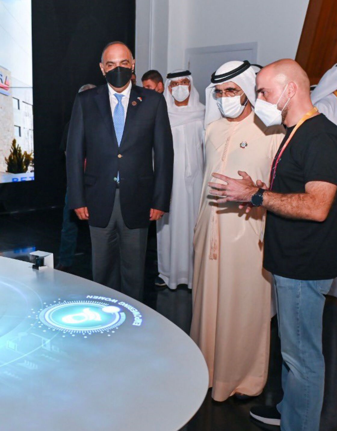 واصطحب رئيس الوزراء، سمو الشيخ محمد بن راشد، بجولة في الجناح الأردني، واطلع على مكوناته وما يتضمنه من عروض وبرامج وفعاليات.