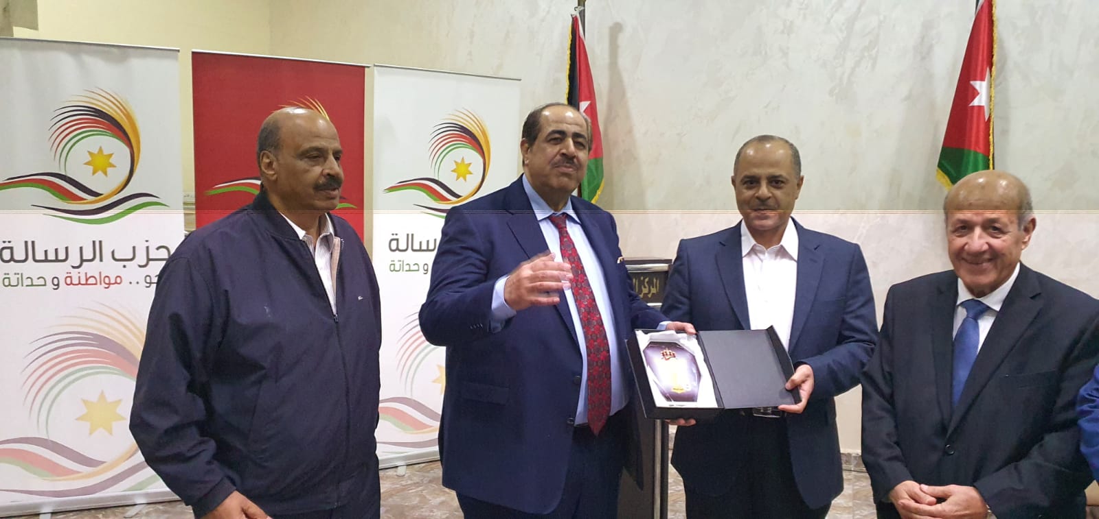 وفي نهاية الندوة قدم الدكتور حازم قشوع درع الحزب للدكتور خير ابو صعيليك لدوره البناء في العمل النيابي والعمل العام.