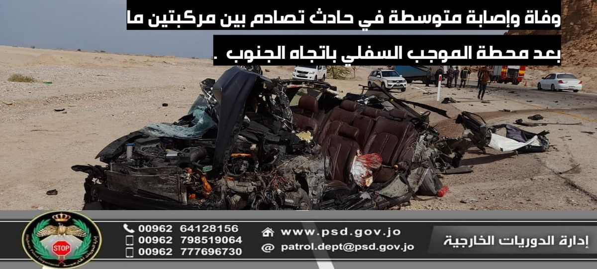 القبة نيوز- توفي شخص وأصيب اخر اثر حادث تصادم وقع بين مركبتين بعد محطة الموجب السفلي باتجاه الجنوب.