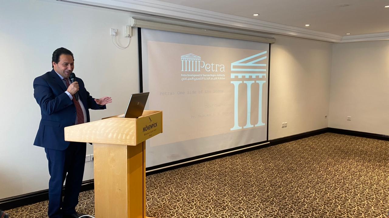 وقدم الفرجات نبذه عن سلطة اقليم البترا النشأة والتأسيس وجهودها في إدارة الإقليم سياحياً وتنموياً من خلال أعمال البنية التحتية والفوقية وتطويره بما يحقق التنمية الشاملة المستدامة لكافة تجمعات الإقليم الستة.