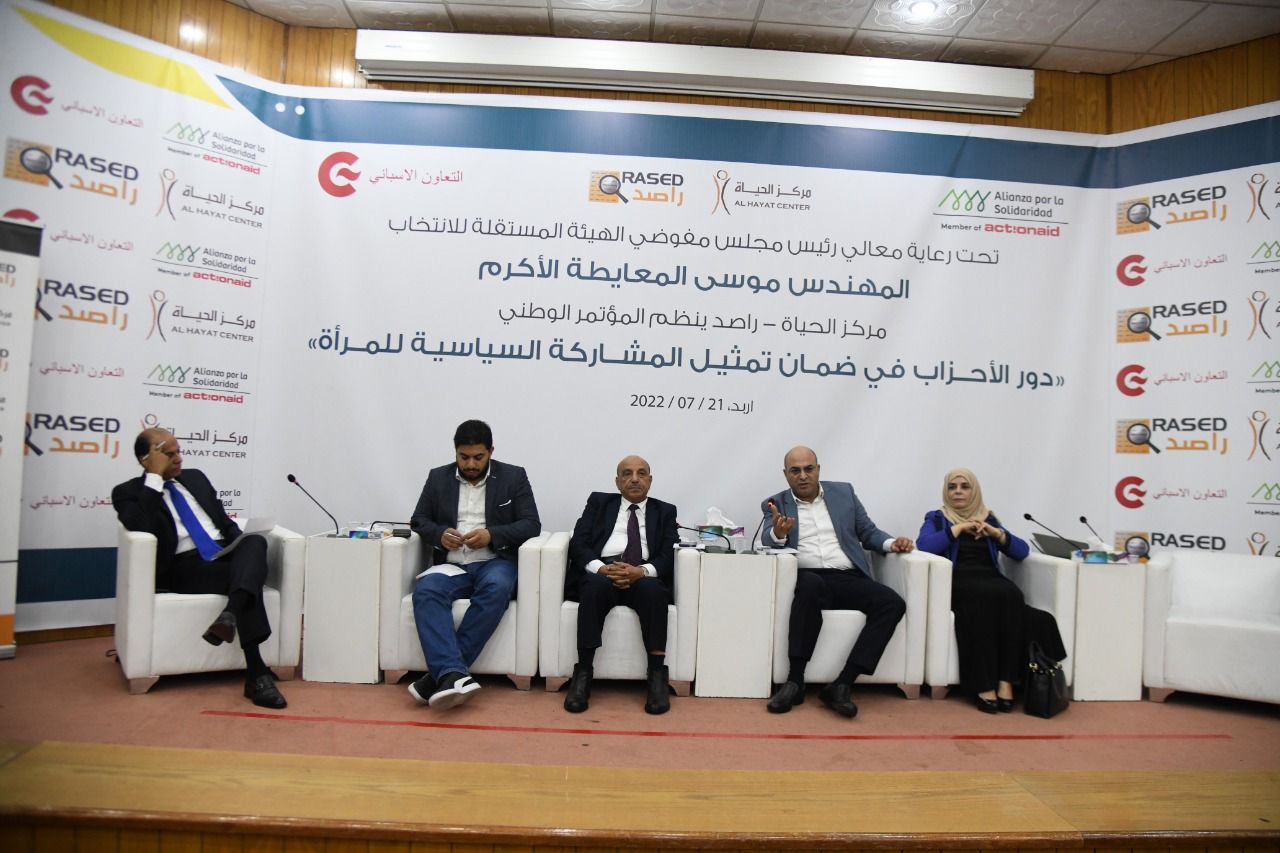 بدوره قال مدير عام مركز الحياة راصد الدكتور عامر بني عامر إن الدور الأهم اليوم أصبح على الأحزاب في دعم المشاركة السياسية للمرأة من خلال طرح برامج تعزز من دورها السياسي وتدعم وجودها داخل الأحزاب باعطائها دورها الذي يحرز تقدمها داخل الأحزاب لتكن شريكة في التقدم والبناء، وأضاف بني عامر بأن المسؤولية في ضمان تمثيل المرأة حزبياً وسياساً لا يمكن وضعها فقط على الأحزاب، بل إنها مسؤولية مشتركة من الجميع وعلى رأسهم الأحزاب والمرأة ذاتها والهيئة المستقلة للانتخاب ومؤسسات المجتمع المدني وكافة الجهات الفاعلة، وقال بني عامر أنه لا بد أن يكون هناك دوراً فاعلاً للقطاع الخاص من خلال المشاركة في الأحزاب ودعمها.