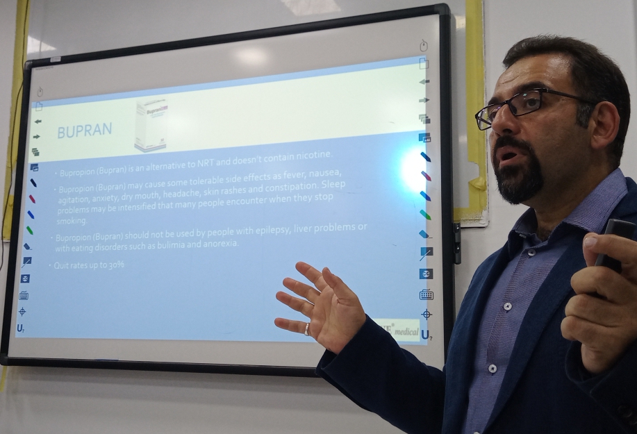 ومن جانبه قال د.بشار الكردي من الشركة الاردنية السويدية، إن الدراسات تشير إلى أن 66% من المدخنين لديهم الرغبة في ترك التدخين، وان فرصة ترك التدخين تقل كلما بدأ التدخين في عمر مبكر، وتزداد الفرصة كلما كان التدخين في عمر متقدم.