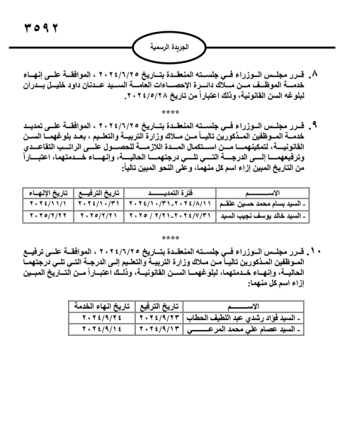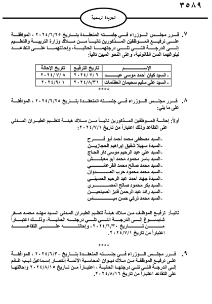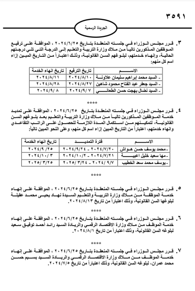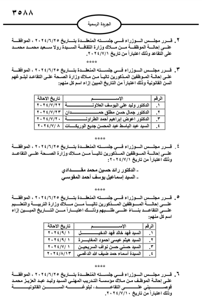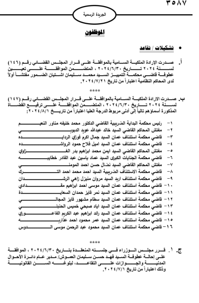 القبة نيوز - صدر في عدد الجريدة الرسمية اليوم الثلاثاء، إرادات ملكية بالموافقة على قرارات مجلس الوزراء بشأن ترفيع قضاة وإحالات على التقاعد لموظفين.