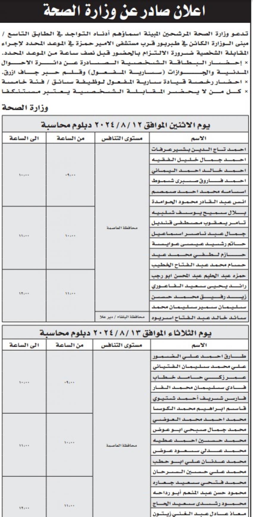 مدعوون للمقابلات واستكمال التعيين في الصحة (أسماء)