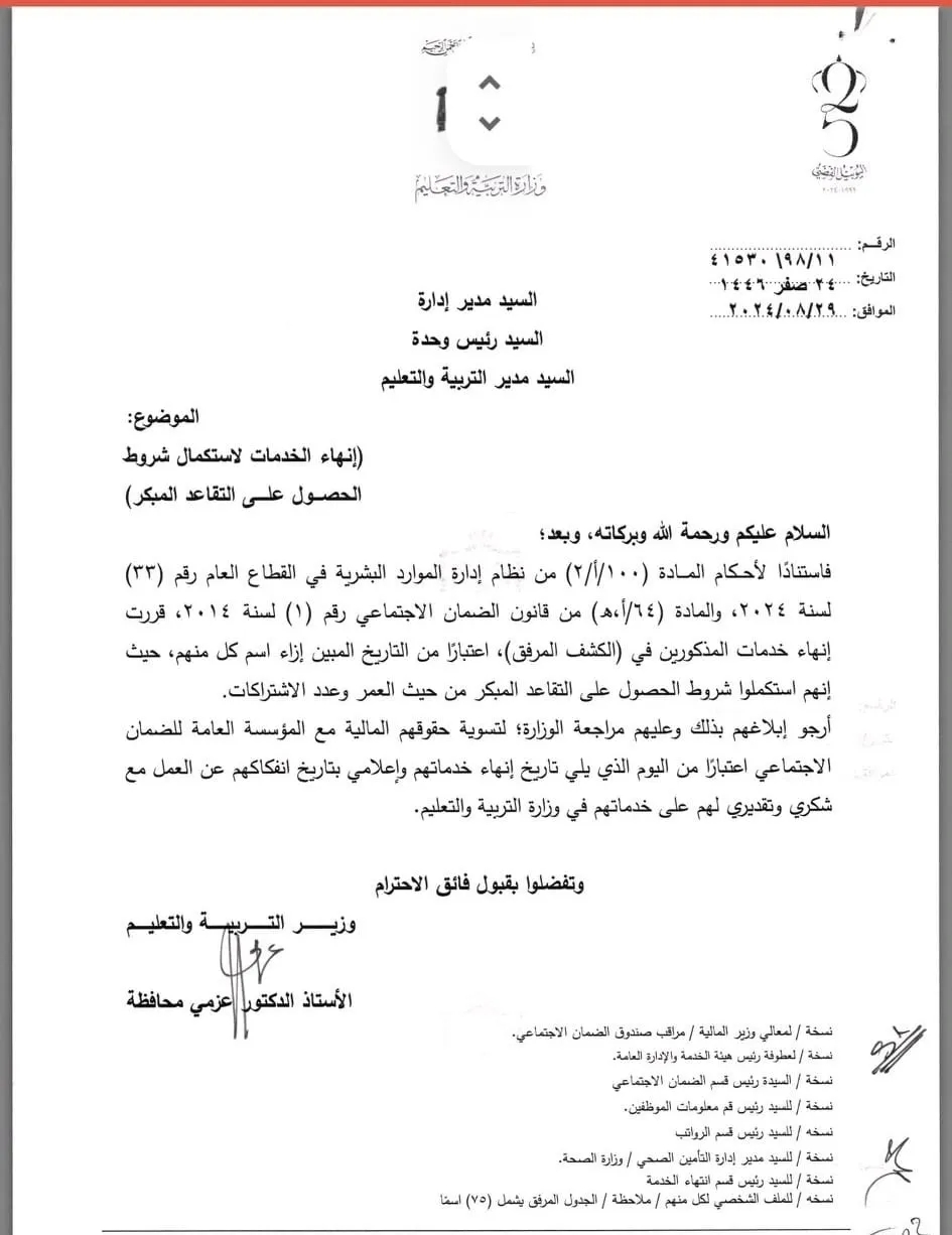 بالاسماء.. إحالات وانهاء خدمات في وزارة التربية