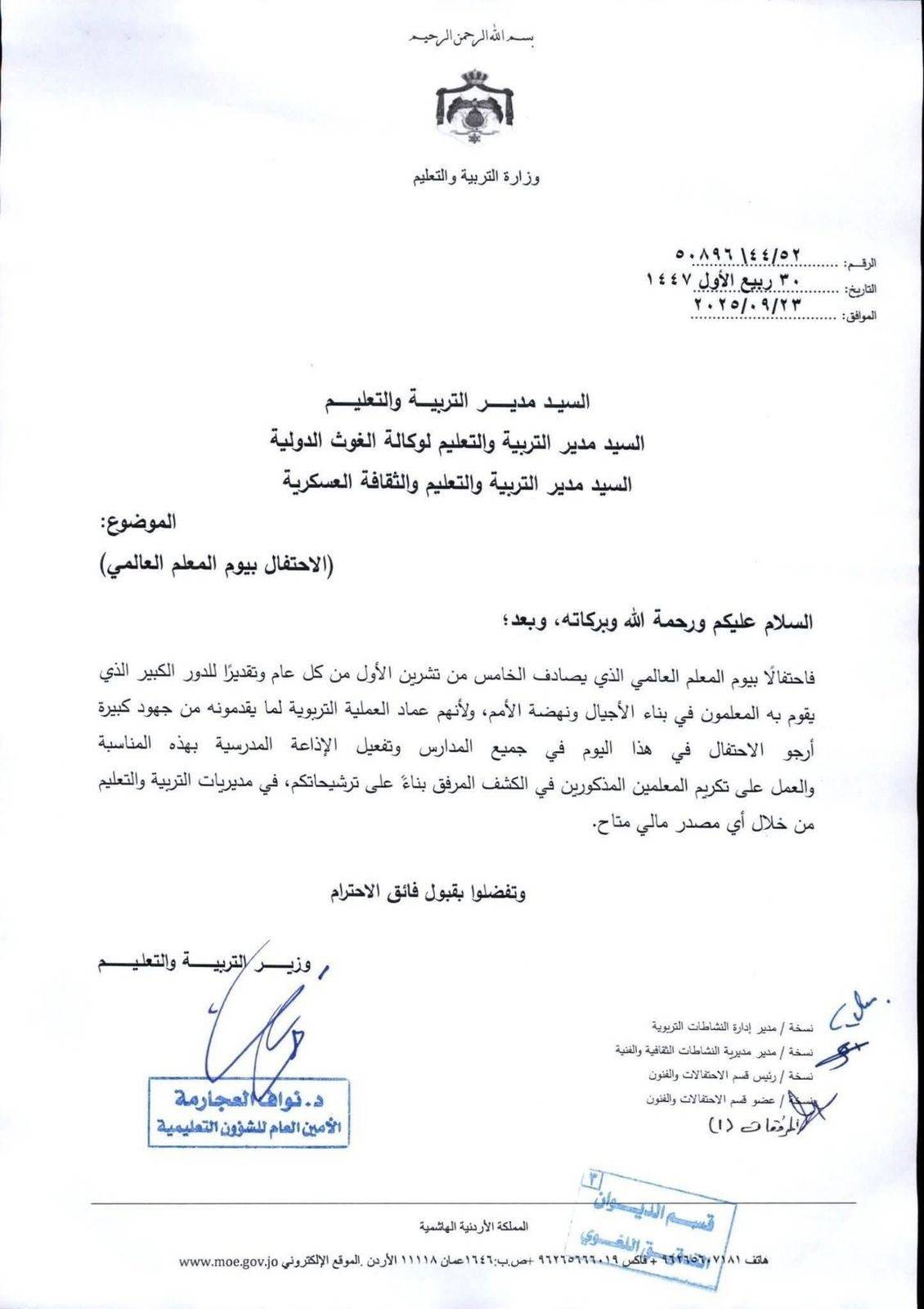 نص التعميم الرسمي: