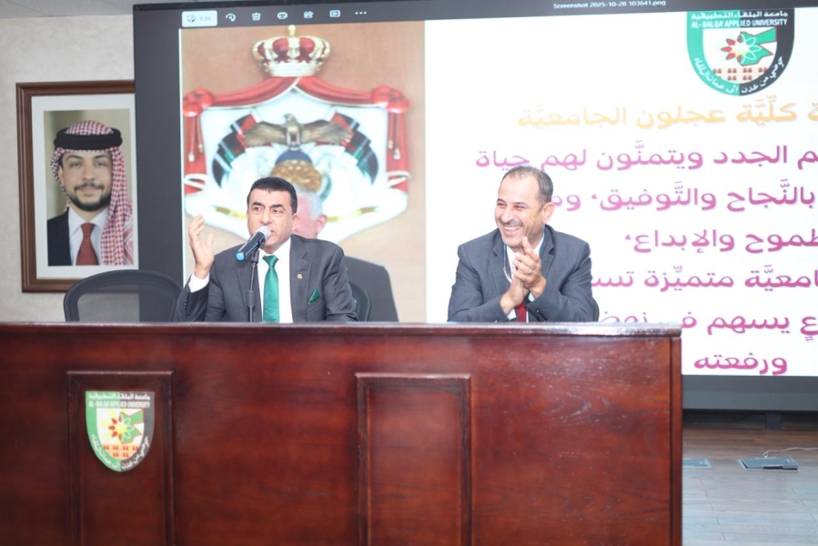 القبة نيوز - انطلاقًا من رؤية ورسالة جامعة البلقاء التطبيقية الهادفة إلى إعداد جيل واعٍ ومؤهل يسهم في مسيرة التنمية الوطنية، وبتوجيهات من عطوفة الأستاذ الدكتور أحمد فخري العجلوني رئيس الجامعة، رعى عميد كلية عجلون الجامعية الأستاذ الدكتور وائل الربضي حفل استقبال الطلبة المستجدين للعام الجامعي 2025/2026، والذي نظمه قسم الخدمات الطلابية والأنشطة في قاعة الشهيد محمد العزام.