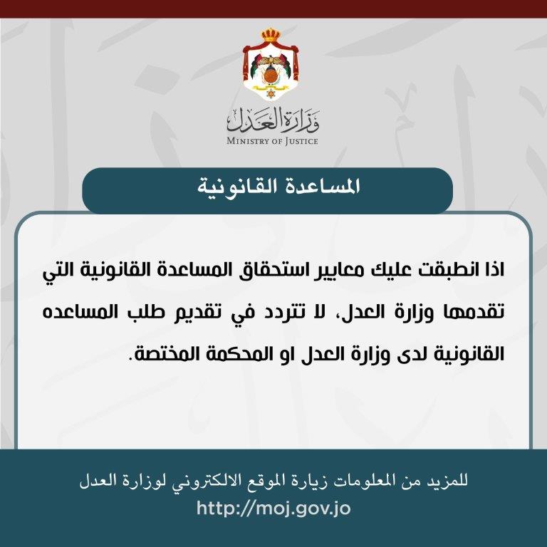 وأكدت الوزارة في إعلانها الرسمي أن المساعدة القانونية متاحة وفق تعليمات محددة، وتشمل تقديم الدعم القانوني لمن لا يستطيع تحمل تكاليف التقاضي، بما يضمن حق الدفاع والمساواة أمام القانون.
