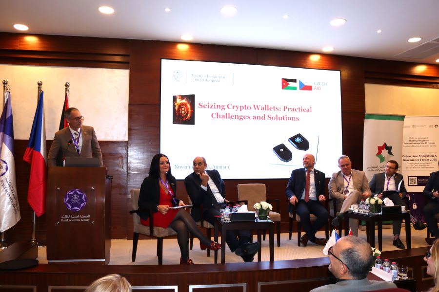 جاء ذلك خلال العرض التقديمي الذي قدمه أمس الثلاثاء في الجمعية العلمية الملكية تحت عنوان "الأصول المشفرة: موازنة الفرص مقابل المخاطر بالأمن السيبراني- نظرة مستقبلية للأردن"، وذلك ضمن فعاليات اليوم الثاني لمنتدى "الحد من الجرائم الالكترونية والحوكمة السيبرانية" الذي نظمته الجمعية لمدة يومين في مقرها، وبرعاية سمو الأميرة سمية بنت الحسن رئيس الجمعية، وذلك بالشراكة مع المركز الوطني للأمن السيبراني، وبدعم من السفارة التشيكية في الأردن، وبمشاركة خبراء ومختصون من جمهورية التشيك، إلى جانب ممثلين عن الأجهزة الأمنية، والقطاع المصرفي والمالي، وقطاعات البنية التحتية الحيوية، إضافة إلى القطاع الأكاديمي وممثلين عن الحكومة.