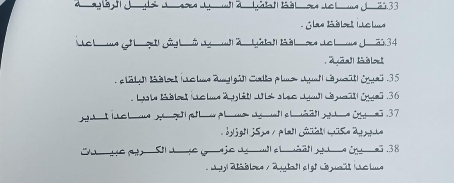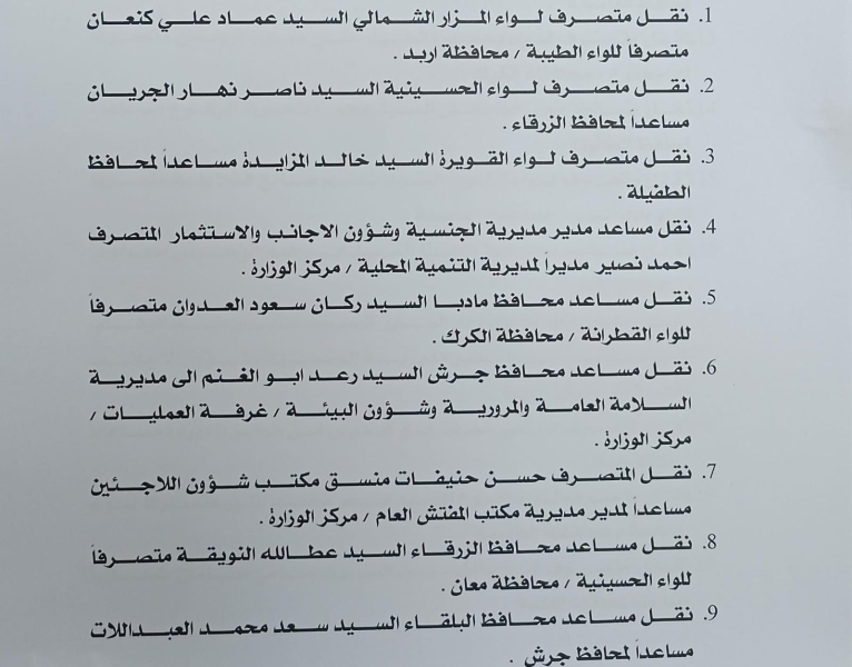 قرر وزير الداخلية مازن الفراية إجراء تشكيلات إدارية واسعة ، شملت كل من: