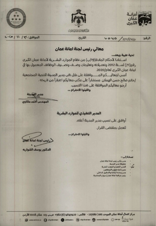أمانة عمّان تُجري تنقلات واسعة في مناصب جديدة