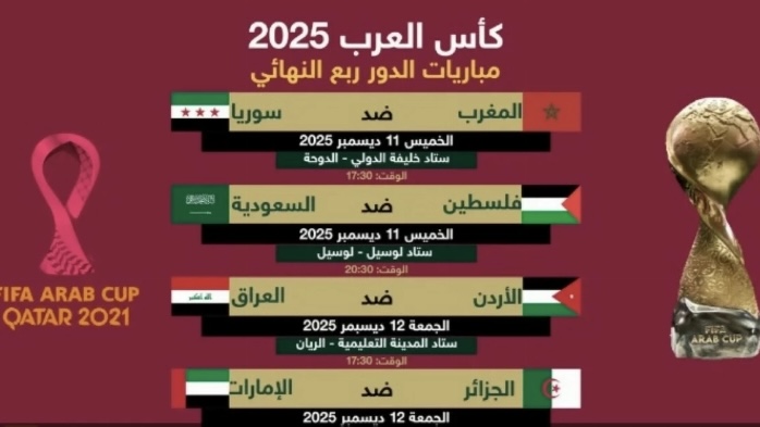 اكتمال عقد ربع النهائي في كأس العرب “قطر 2025” والمواجهات تنطلق الخميس