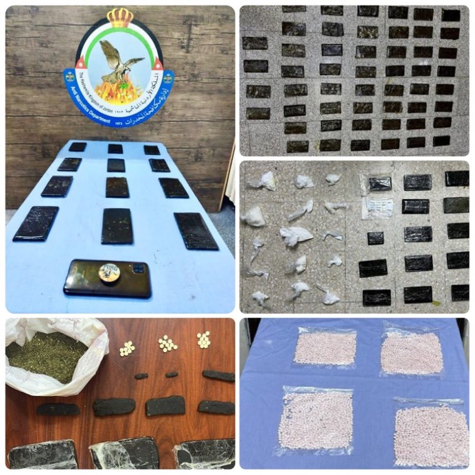 • في قضية أخرى شرق العاصمة، ضبط 52 كف حشيش، وفي جنوب العاصمة 5 آلاف حبة مخدرة، وفي البادية الوسطى 17 كف حشيش، وفي الزرقاء 5 آلاف حبة مخدرة.