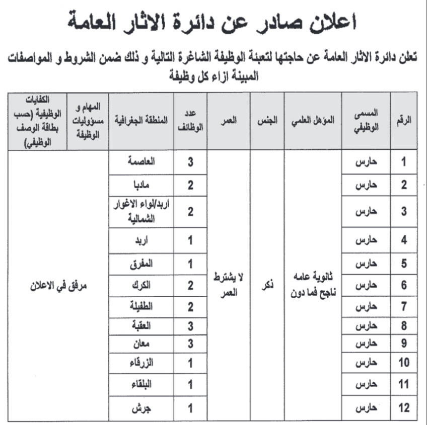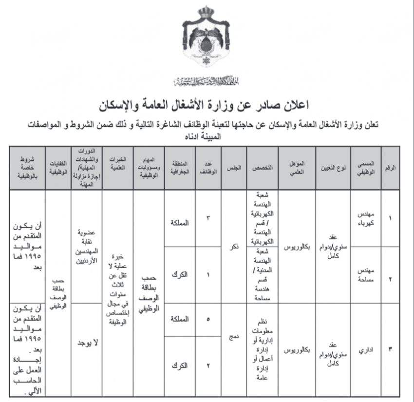 - أعلنت وزارات ودوائر حكومية اليوم الثلاثاء حاجتها لتعيين موظفيين لوجود بعض الشواغر.
