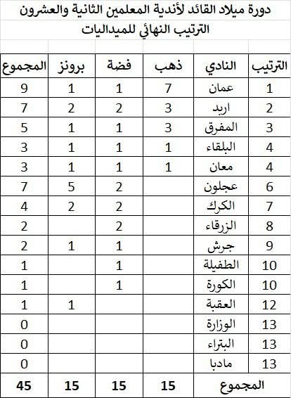 وأضاف أن دورة ميلاد القائد الرياضية (22) جسّدت معاني الأخوّة والانتماء، وكانت المصلحة الوطنية العليا حاضرة في جميع مراحلها، بما يعكس رسالة أندية المعلمين ودورها الريادي في خدمة المعلم الأردني، وتعزيز القيم الرياضية والوطنية بين منتسبيها.
