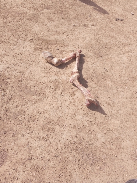 القبة نيوز - وصل إلى "القبة نيوز" مجموعة صور أرسلها شهود عيان من محافظة المفرق البادية الشمالية، تظهر عظامًا منتشرة بجانب مخيم اللاجئين السوريين المقام على أراضي بلدة الزعتري، وتحديدًا خلف الساتر الترابي المحيط بالمخيم.