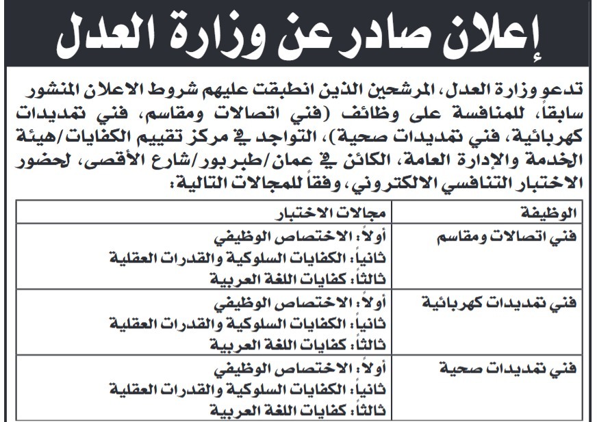 دعت الدوائر الحكومية، اليوم الأربعاء، المرشحين المستوفين شروط الإعلان السابق، إلى إجراء الامتحان التنافسي.
