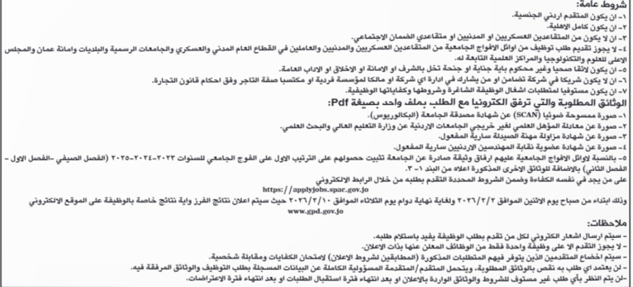 أعلنت دائرة المشتريات الحكومية، اليوم الأحد، عن حاجتها لتعبئة عدد من الوظائف الشاغرة.