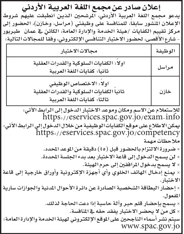 وظائف شاغرة ومدعوون للاختبار التنافسي