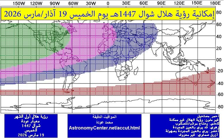 وتشير التقديرات الفلكية إلى أن رؤية الهلال يوم الخميس ستكون غير ممكنة في مناطق شرق العالم الإسلامي، فيما تكون صعبة في مناطق الوسط، الأمر الذي يفتح المجال لاحتمال اختلاف موعد عيد الفطر بين الدول، بحيث قد يُصادف يوم الجمعة في بعضها، ويوم السبت في دول أخرى.