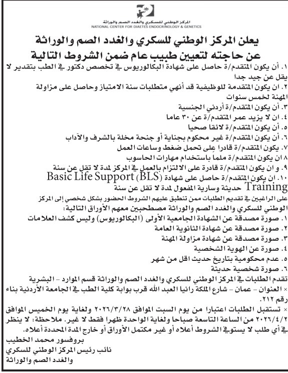 المجلس التمريضي الأردني يعلن عن شاغر وظيفي لاختصاصي اعتماد