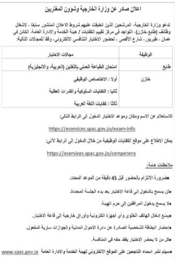 - دعت دوائر حكومية اليوم الاثنين ، المرشحين الذين انطبقت عليهم شروط الاعلان المنشور سابقا للامتحان التنافسي.