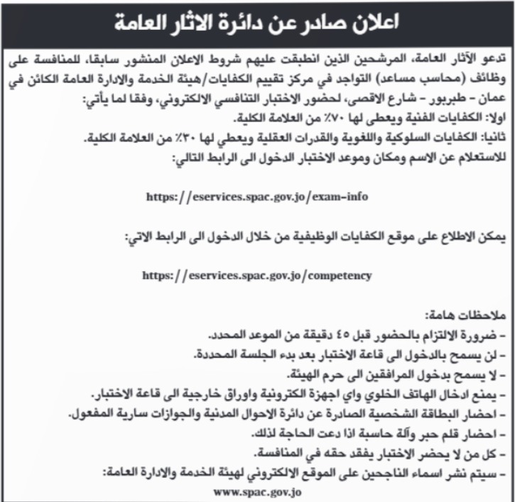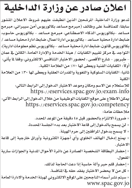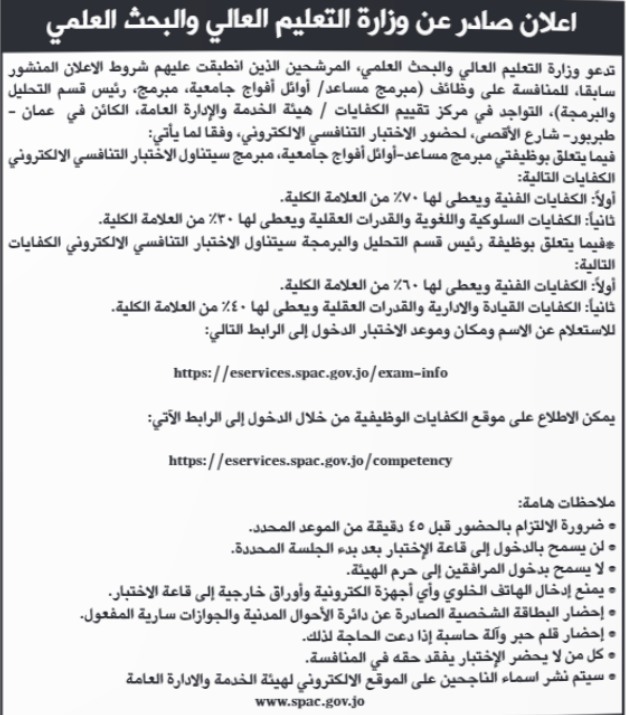 القبة نيوز - دعت دوائر حكومية اليوم الاثنين ، المرشحين الذين انطبقت عليهم شروط الاعلان المنشور سابقا للامتحان التنافسي.
