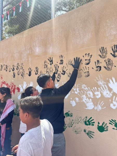 وتضمنت الفعاليات رسم جدارية بعنوان "بصمتك ارسم علمك"، حيث شارك الحضور في تنفيذها من خلال وضع بصماتهم بألوان العلم الأردني، تعبيراً عن اعتزازهم بالوطن وولائهم للقيادة.