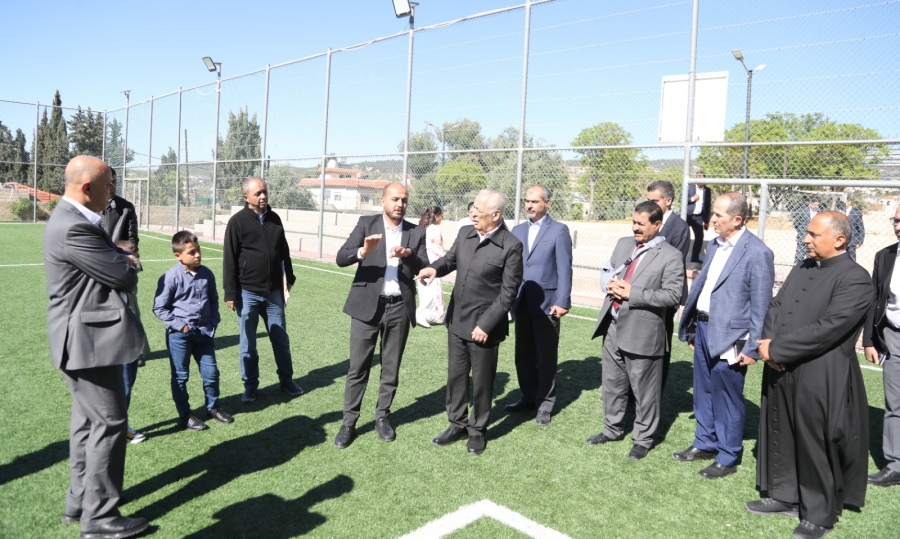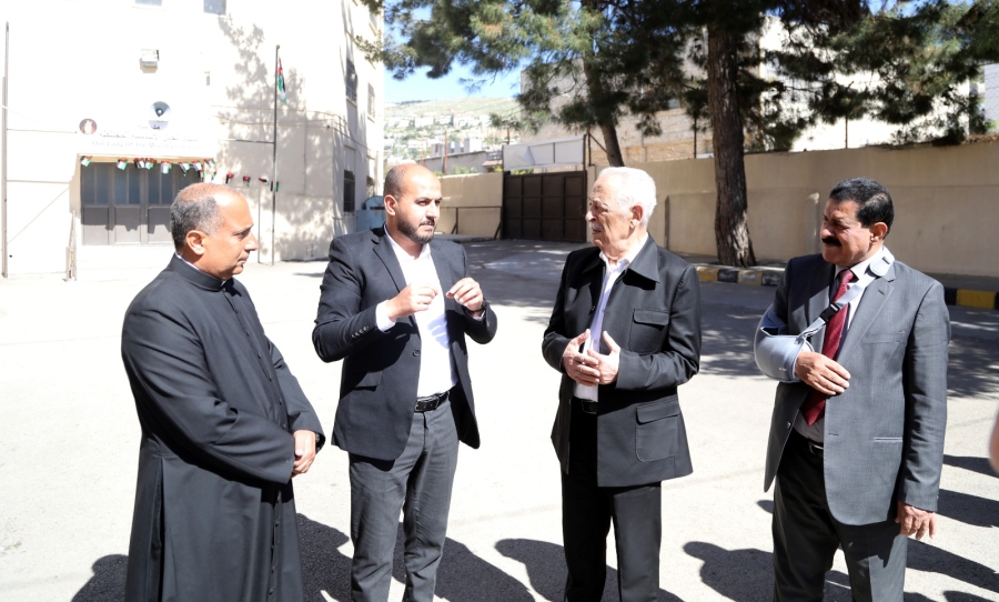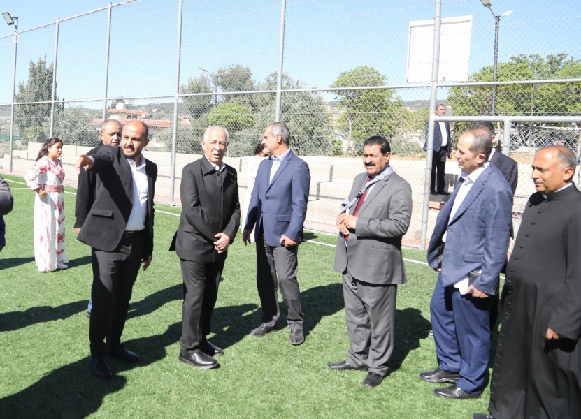 رئيس الديوان الملكي العامر يتفقد مشروع انشاء مساكن في منطقة كفرنجة ويفتتح مرافق القاعة والملعب الخماسي .