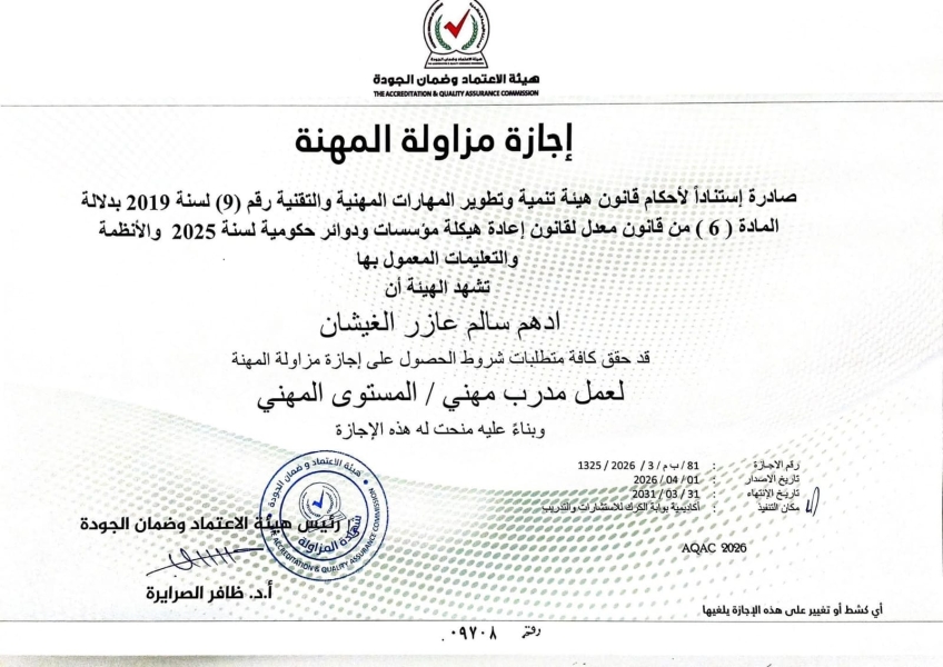 اعتماد أدهم غيشان مدربًا مهنيًا معتمد