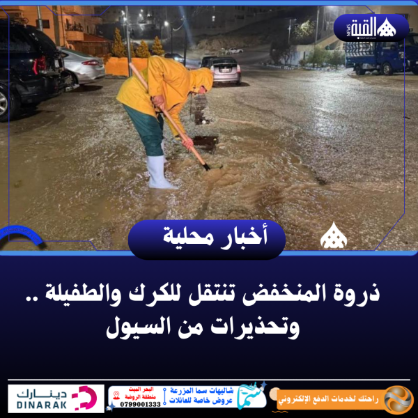 الأرصاد تحذر من استمرار الأمطار الغزيرة في الكرك والطفيلة
