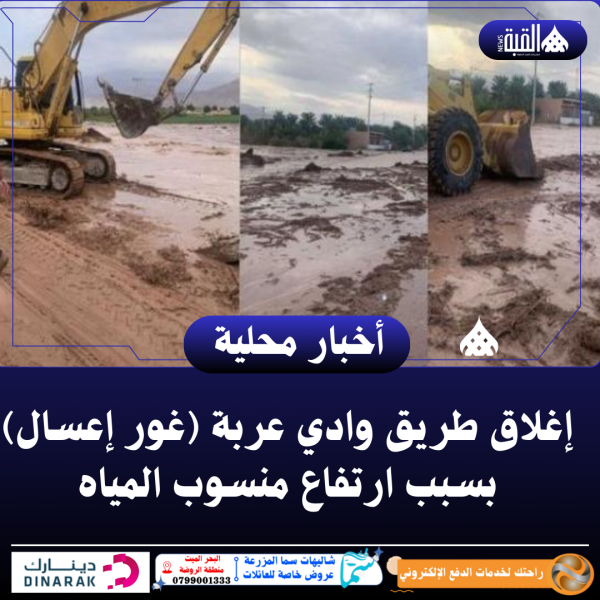 إغلاق طريق وادي عربة (غور إعسال) بسبب ارتفاع منسوب المياه