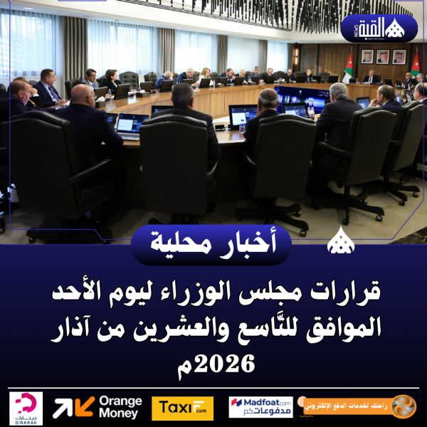 قرارات مجلس الوزراء ليوم الأحد الموافق للتَّاسع والعشرين من آذار 2026م