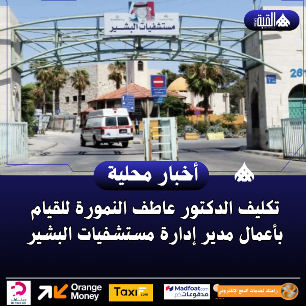 تكليف الدكتور عاطف النمورة للقيام بأعمال مدير إدارة مستشفيات البشير