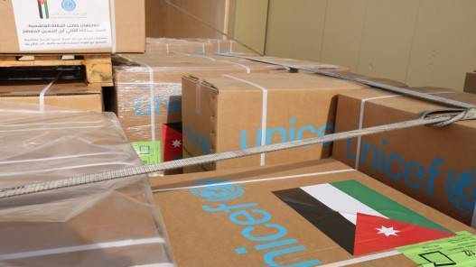 • الهيئة الخيرية الهاشمية ويونيسيف ترسلان طائرة جديدة إلى غزة محملة بالألبسة