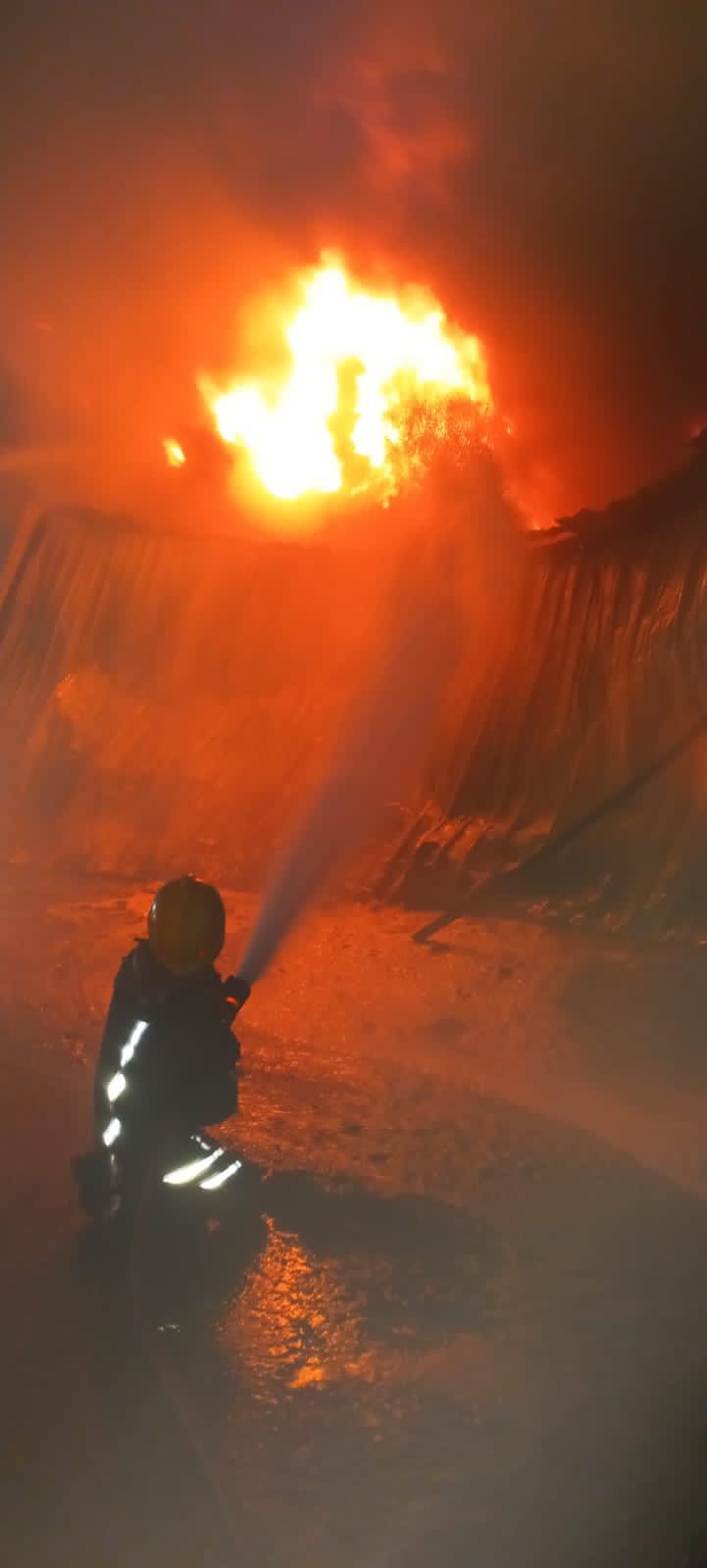 الدفاع المدني يخمد حريق عدد من المخازن تحتوي على بكس البوليسترين في محافظه العاصمه