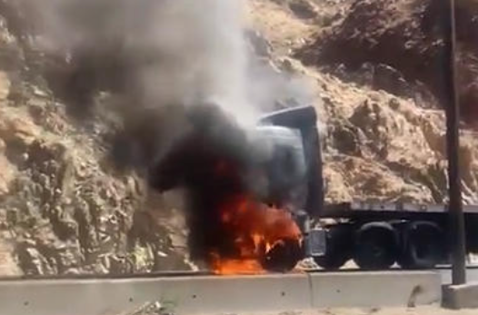احتراق شاحنة نقل كبيرة على الطريق الخلفي في العقبة