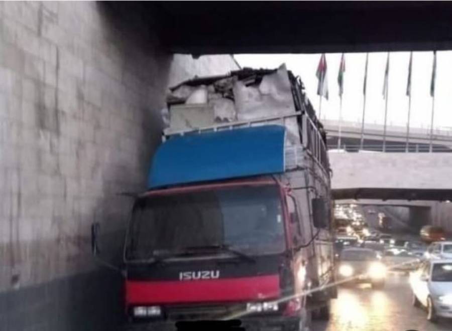 تعطل مركبة شحن على مخرج نفق خلدا باتجاه المدينة .. صور