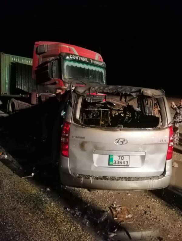 وفاة و6 اصابات بتصادم باص يقل سياحا وشاحنة على "الصحراوي"