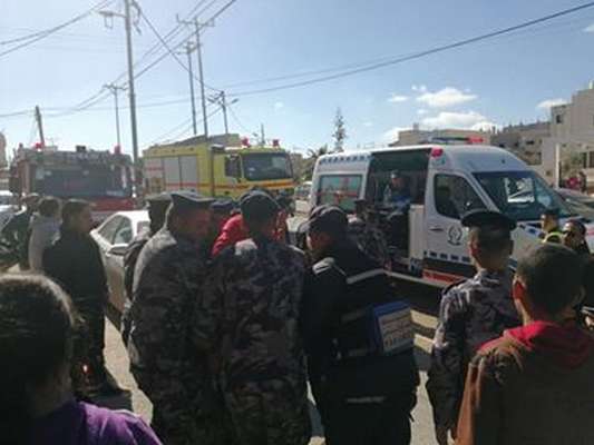(7) إصابات اثر تصادم مركبتين على طريق كفرنجة الاغوار
