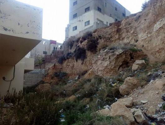اخلاء سكان احدى العمارات في منطقة النصر بعد انهيار السور الاستنادي الملاصق لها