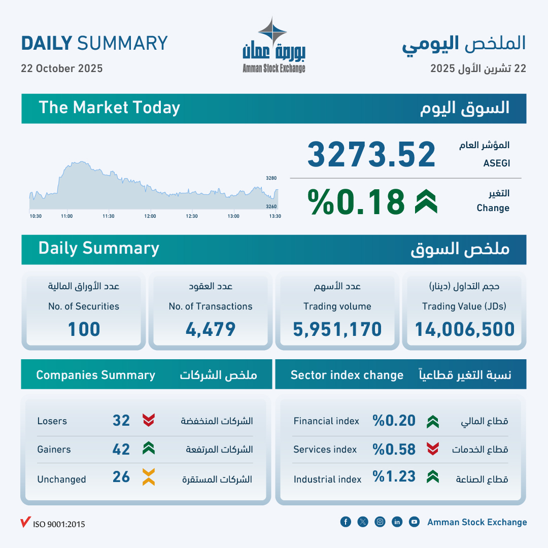 بورصة عمان تغلق تداولاتها على ارتفاع