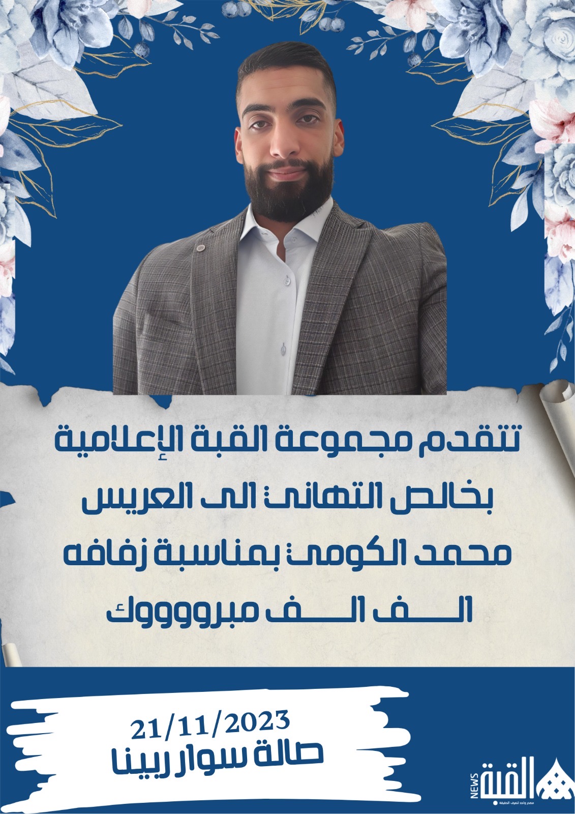 تتقدم مجموعة القبة الإعلامية بخالص التهاني الى العريس محمد الكومي بمناسبة زفافه الف الف مبروووووك